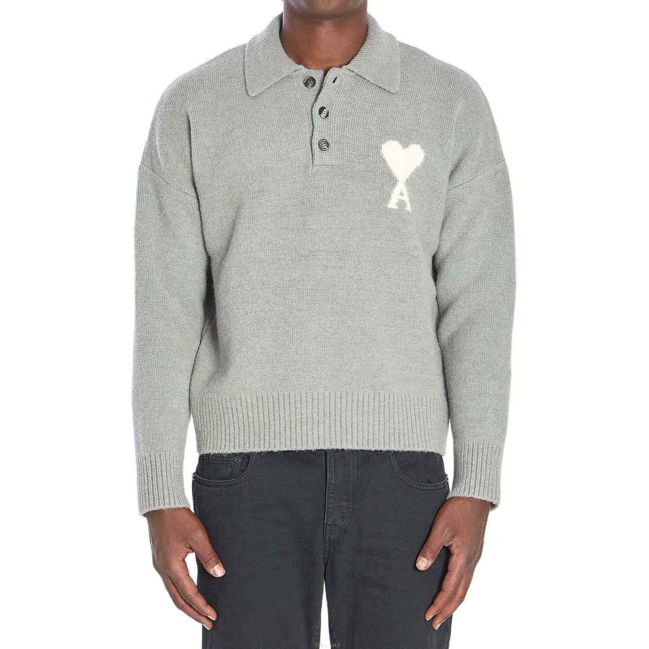 Поло Ami Paris Ami De Coeur Intarsia AMIPARIS, серый