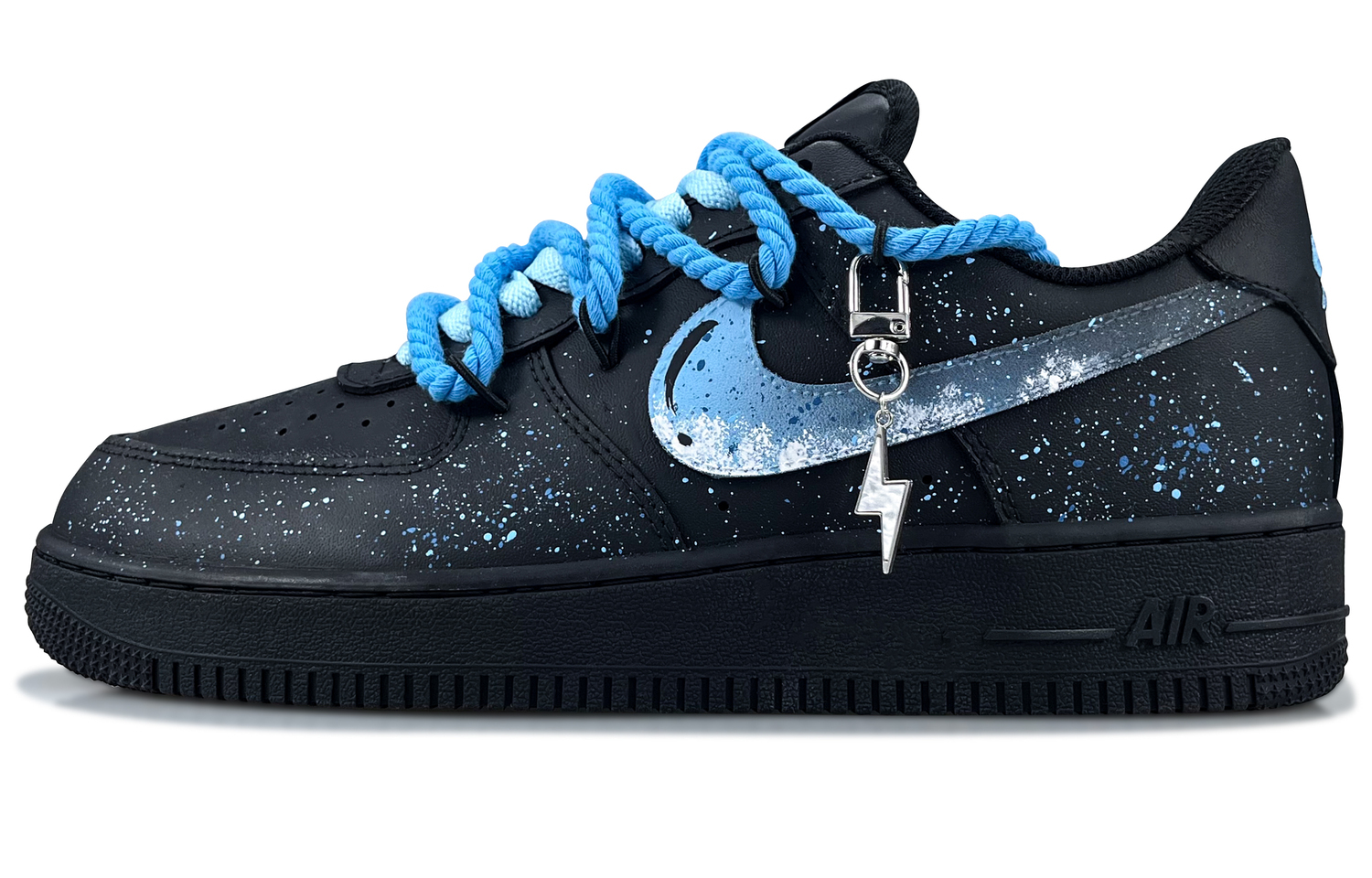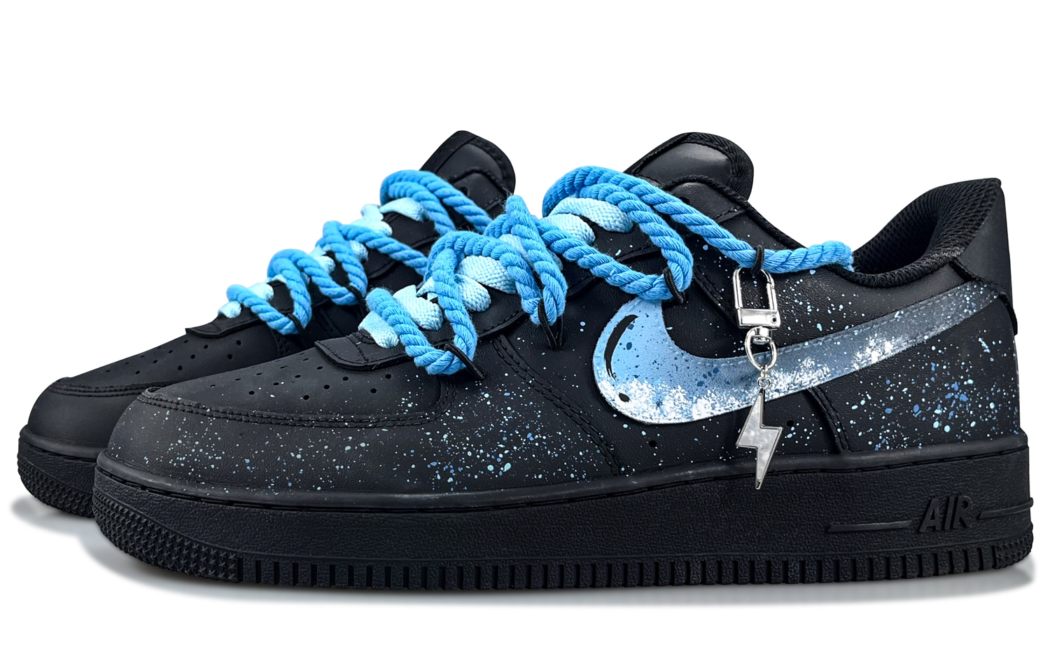 Эти кроссовки изготовлены на основе оригинальных детских кроссовок Nike Air Force 1 Black Warrior Leather Retro Wrap Warm Low-top с оригинальным артикулом DH2920-001. Дизайн вдохновлён сочетанием звёзд и молний.