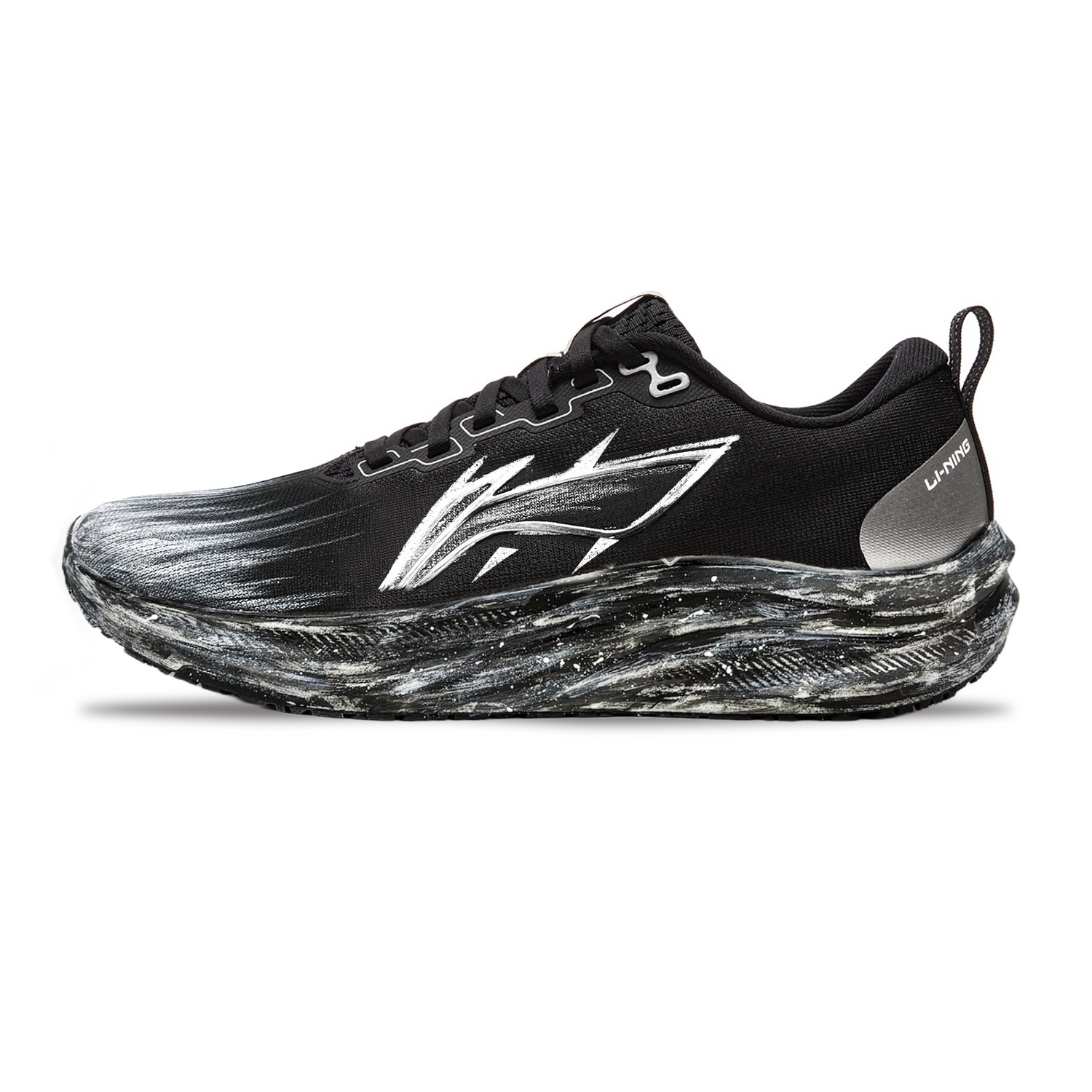 Оригинальная модель этих кастомных кроссовок - мужские чёрные кроссовки LiNing Chitu 8 Marathon Training (модель ARPV001-5) с амортизацией, ударопоглощающим покрытием из термополиуретана, противоскользящими свойствами, износостойкостью, воздухопроницаемостью, лёгкостью и отзывчивостью. Дизайн вдохновлён глубокой романтикой безграничной вселенной.