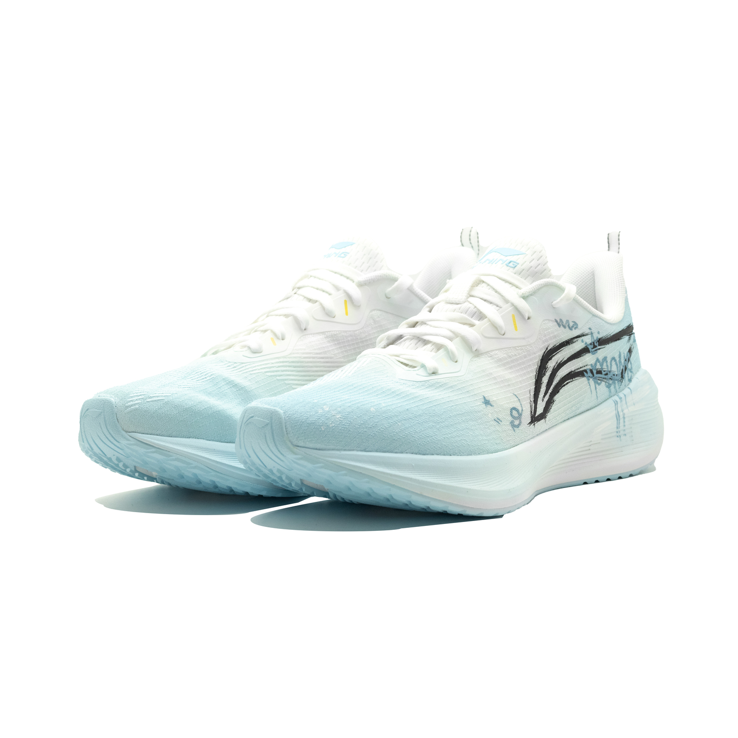 Эти кроссовки изготовлены на заказ с использованием оригинальной толстой подошвы LiNing Wuyue Body Test, увеличивающей высоту, лёгкой, с высоким отскоком, амортизацией, противоскользящей, износостойкой, дышащей, с низким верхом, для повседневного использования, для мужчин, белые. Вдохновение: Верхняя часть выполнена в градиентном аквамариновом цвете, напоминающем мягкий блеск солнечного света, отражающегося от морских волн. Обтекаемая конструкция межподошвы имитирует волнообразные движения океана, обеспечивая плавную амортизацию и толчок, создавая ощущение скольжения по волнам.