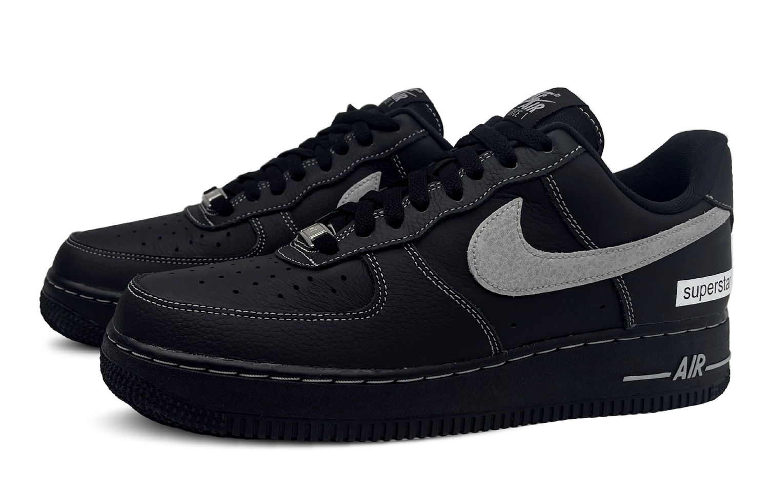 Эти кроссовки созданы на основе оригинальной модели Nike Air Force 1 '07 LV8 - классических и универсальных низких кроссовок черного цвета унисекс под артикулом HQ2037-006. Дизайн вдохновлен минималистской модой. Верхняя часть выполнена в черно-белой цветовой гамме, что придает ей стильный и дерзкий вид, идеально подходящий для законодателей моды - в уличном стиле и с модным акцентом.