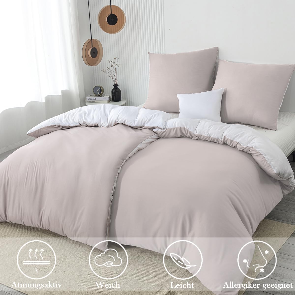 Молния: пододеяльник оснащен молнией, что упрощает его надевание и снятие. Наволочки также имеют молнию и идеально вписываются в общий дизайн. Чтобы одеяло оставалось на месте, по соответствующим углам предусмотрены завязки, которые позволяют прикрепить одеяло к пододеяльнику, и оно не будет сбиваться.