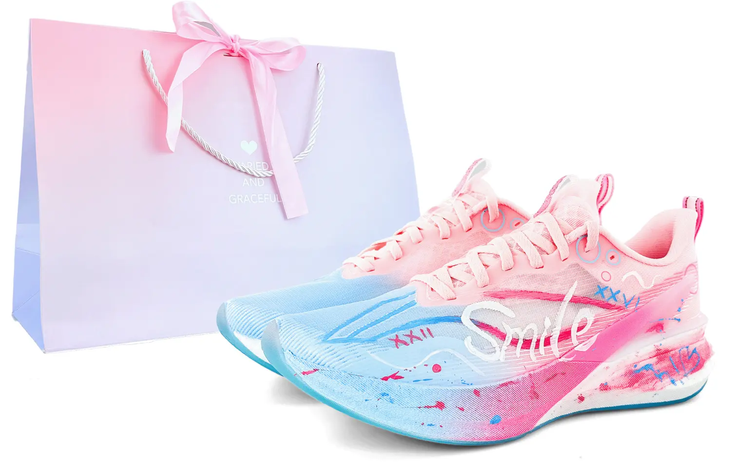 Эти кроссовки созданы на основе оригинальной модели Li-Ning Chitu 8 Pro с артикулом ARPV003-12 и дополнительным артикулом APRV006-13. Вдохновением послужила заметная надпись «Smile» на верхней части кроссовок, которая служит кнопкой запуска. Каждая улыбка - это мощный и приятный «сигнал сердцебиения». Эти кроссовки - самый модный генератор сигналов, который автоматически притягивает взгляды, куда бы вы ни пошли.