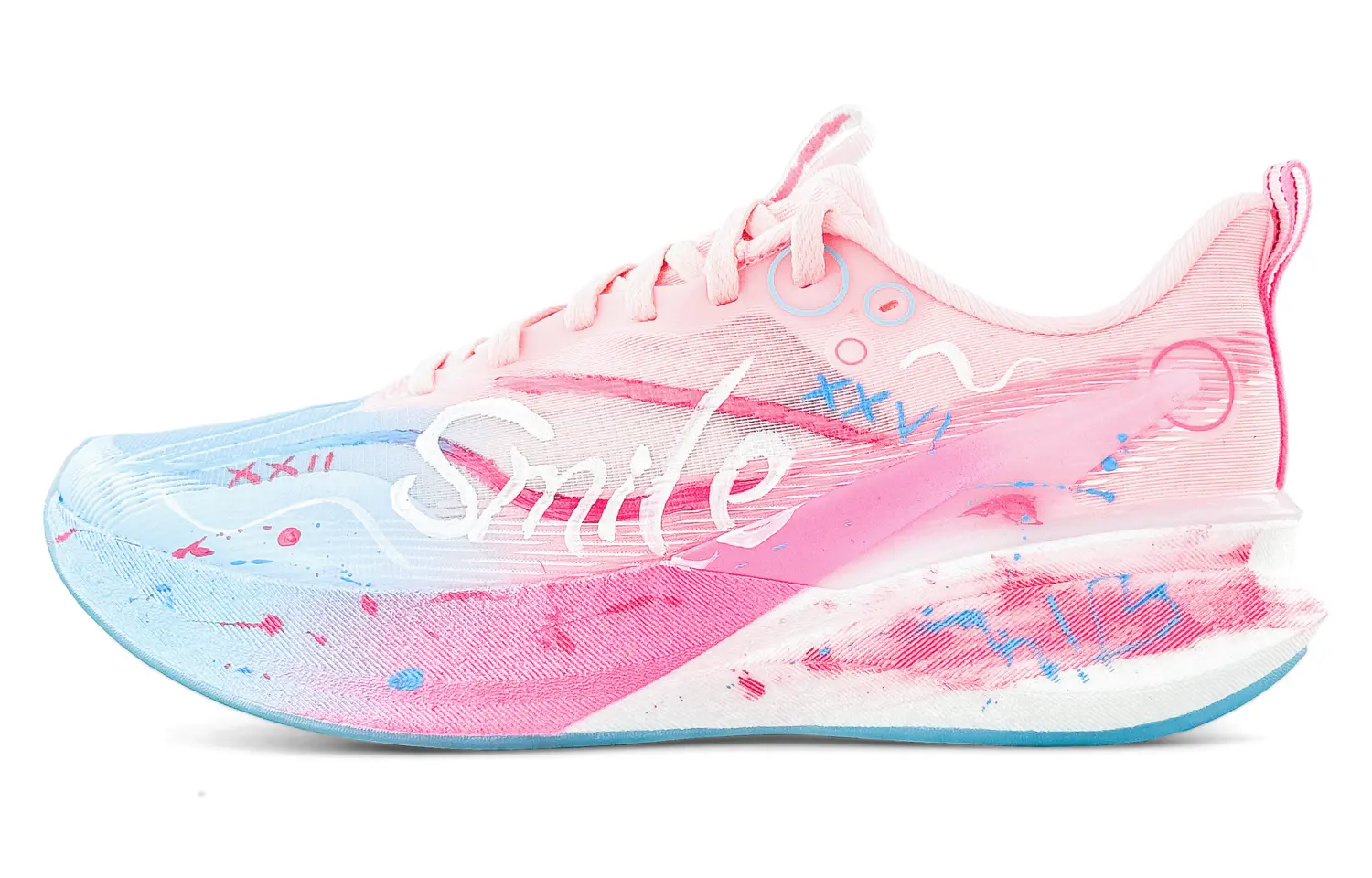 Эти кроссовки созданы на основе оригинальной модели Li-Ning Chitu 8 Pro с артикулом ARPV003-12 и дополнительным артикулом APRV006-13. Вдохновением послужила заметная надпись «Smile» на верхней части кроссовок, которая служит кнопкой запуска. Каждая улыбка - это мощный и приятный «сигнал сердцебиения». Эти кроссовки - самый модный генератор сигналов, который автоматически притягивает взгляды, куда бы вы ни пошли.