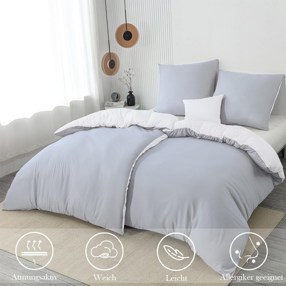 Молния: пододеяльник оснащен молнией, что упрощает его надевание и снятие. Наволочки также имеют молнию и идеально вписываются в общий дизайн. Чтобы одеяло оставалось на месте, по соответствующим углам предусмотрены завязки, которые позволяют прикрепить одеяло к пододеяльнику, и оно не будет сбиваться.