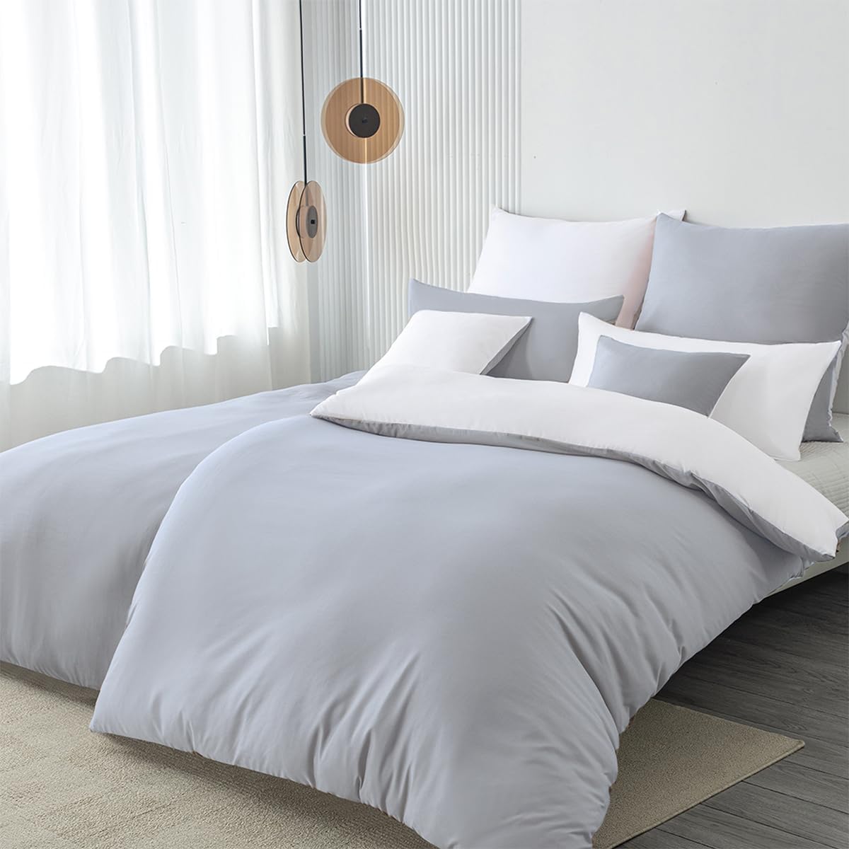 2 пододеяльника + 2 наволочки: в комплект входят 2 пододеяльника размером 135 x 200 см на молнии, 2 наволочки на молнии; одеяло и подушка в комплект не входят.