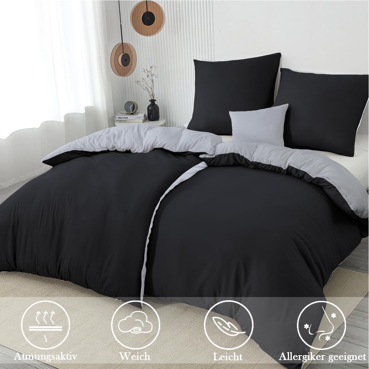 Молния: пододеяльник оснащен молнией, что упрощает его надевание и снятие. Наволочки также имеют молнию и идеально вписываются в общий дизайн. Чтобы одеяло оставалось на месте, по соответствующим углам предусмотрены завязки, которые позволяют прикрепить одеяло к пододеяльнику, и оно не будет сбиваться.