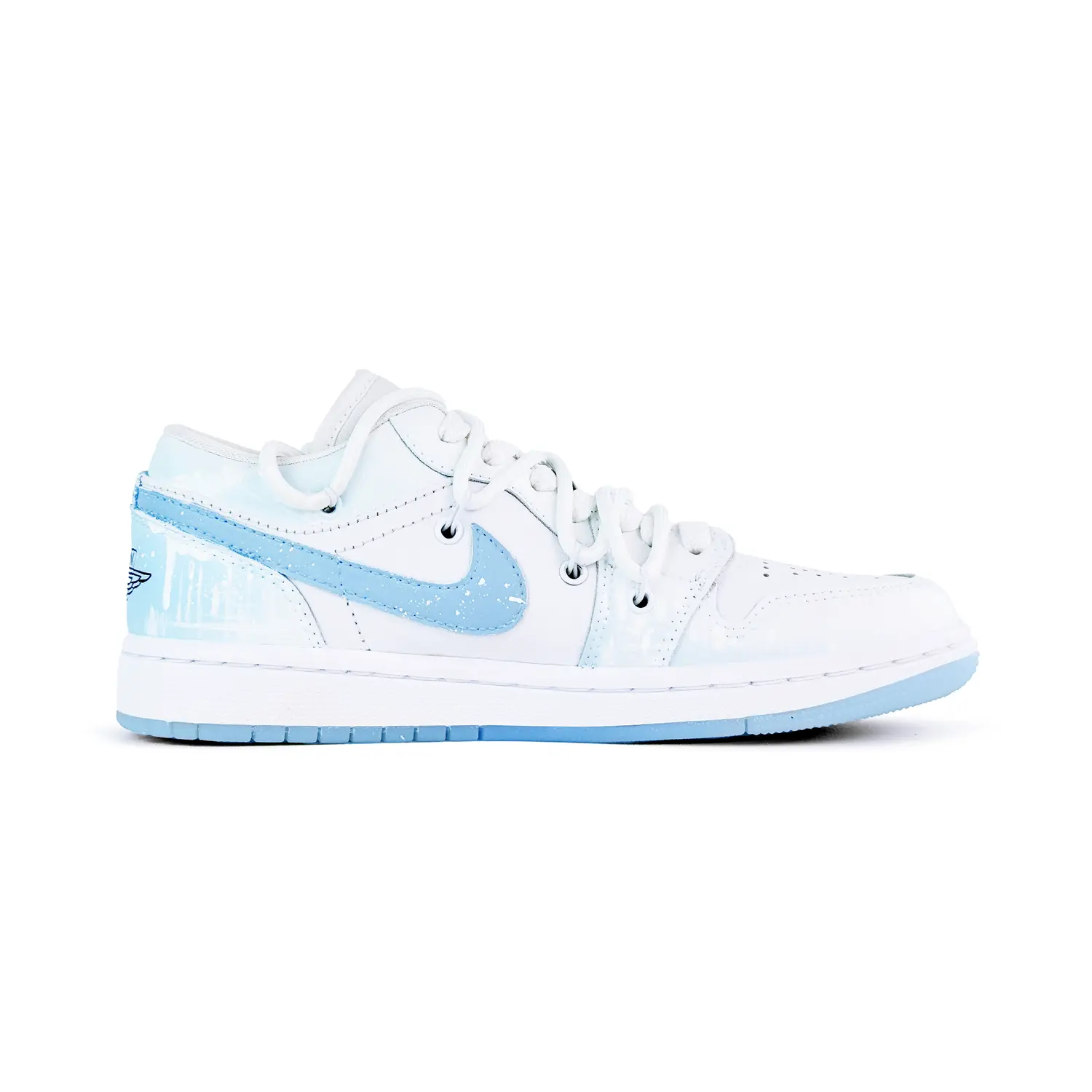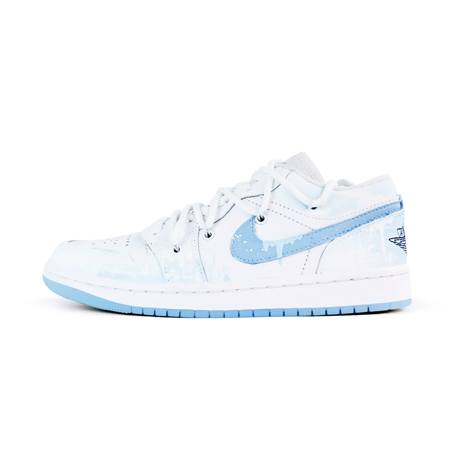 Эти кастомные кроссовки созданы на основе оригинальной модели Air Jordan 1 Low «Wolf Grey». Оригинальный артикул - DC0774-105. Общая цветовая гамма - синяя, с градиентной аэрозольной краской в качестве основной детали. В целом, модель выглядит простой, изысканной и универсальной. Вдохновение: лёгкий, мечтательный градиент, напоминающий цвета конфет, создаёт лёгкую и жизнерадостную атмосферу, которая ещё больше подчёркивает индивидуальность и отражает уникальный вкус.