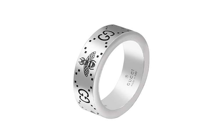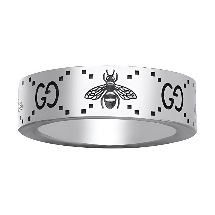 Кольцо широкое с гравировкой Gg And Bee GUCCI, белый