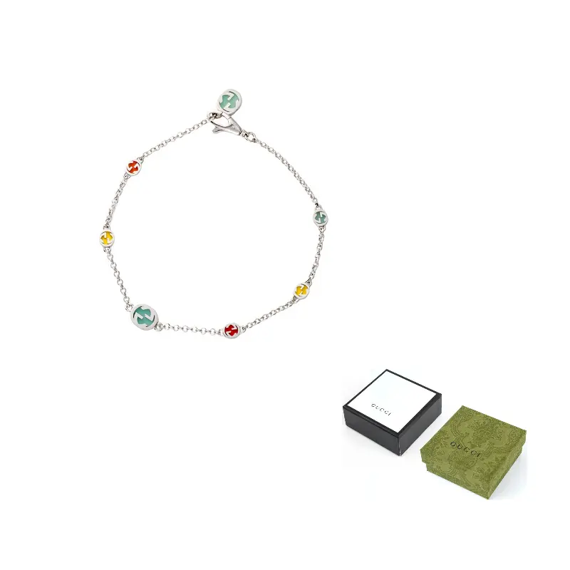 Переплетающийся G эмалевый браслет GUCCI, серебряный 37 714₽