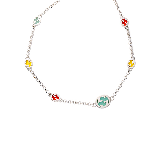 Переплетающийся G эмалевый браслет GUCCI, серебряный