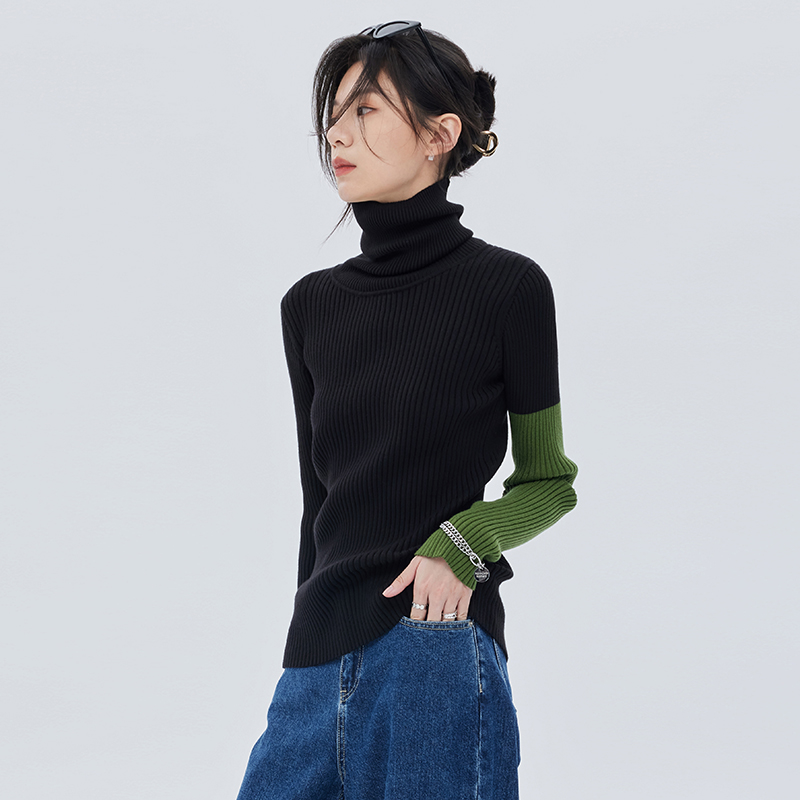 Описание дизайна: В этом году мы выпустили множество трикотажных изделий в стиле пэчворк, позволяющих создавать разнообразные стили и создавать разнообразные образы. Многие из наших предыдущих бестселлеров были выполнены в зелёном цвете, поэтому на этот раз мы выбрали насыщенный оливковый для пэчворк-дизайна. Воротник достаточно большой, чтобы не сдавливать шею. Основная часть - классический универсальный чёрный свитер в рубчик, а общий стройнящий и подчёркивающий фигуру силуэт чётко виден.