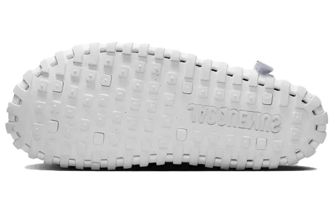 Эта модель полностью выполнена из кожи, с сетчатым язычком и подкладкой - базовым дизайном версии AF1. Однако Саймон добавляет стильный штрих с помощью плетёной межподошвы. Металлическая серебристая фурнитура, логотип Jacquemus на двусторонней шнуровке, утопленный каблук и резиновая подошва с вафельным рисунком завершают дизайн.