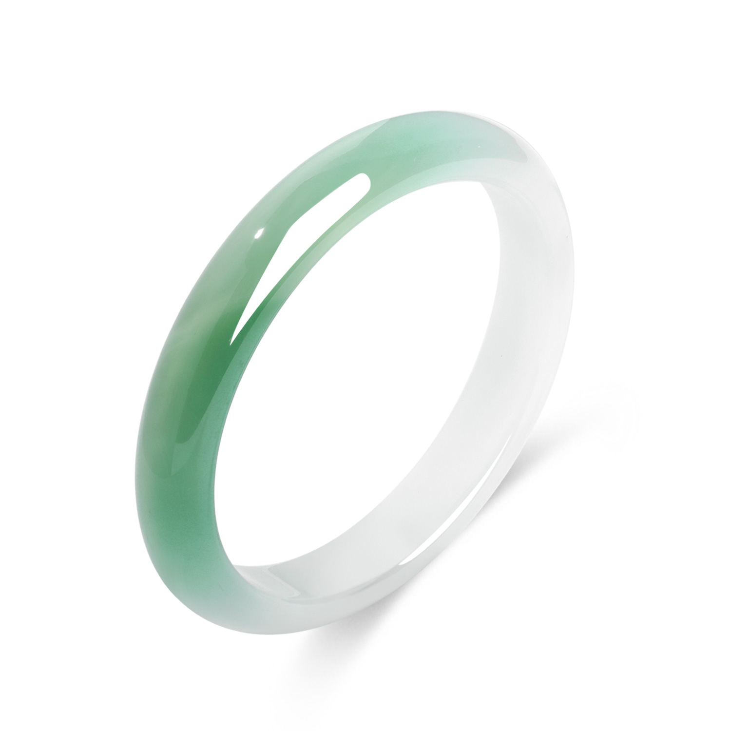 Браслеты agate & chalcedony women's IWE, Half White Half Green Round Chalcedony Bangle+Box Limited Edition