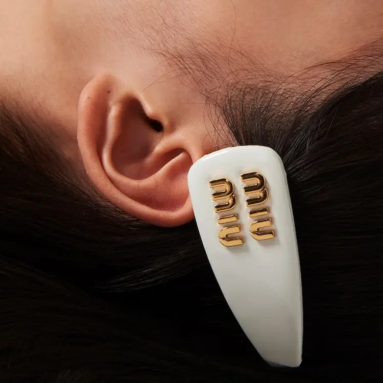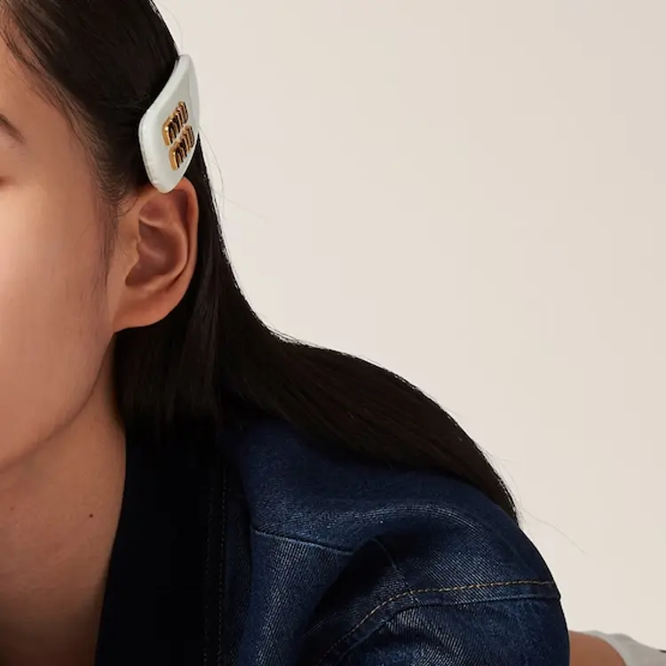 Кожаная заколка для волос MIU MIU, белый