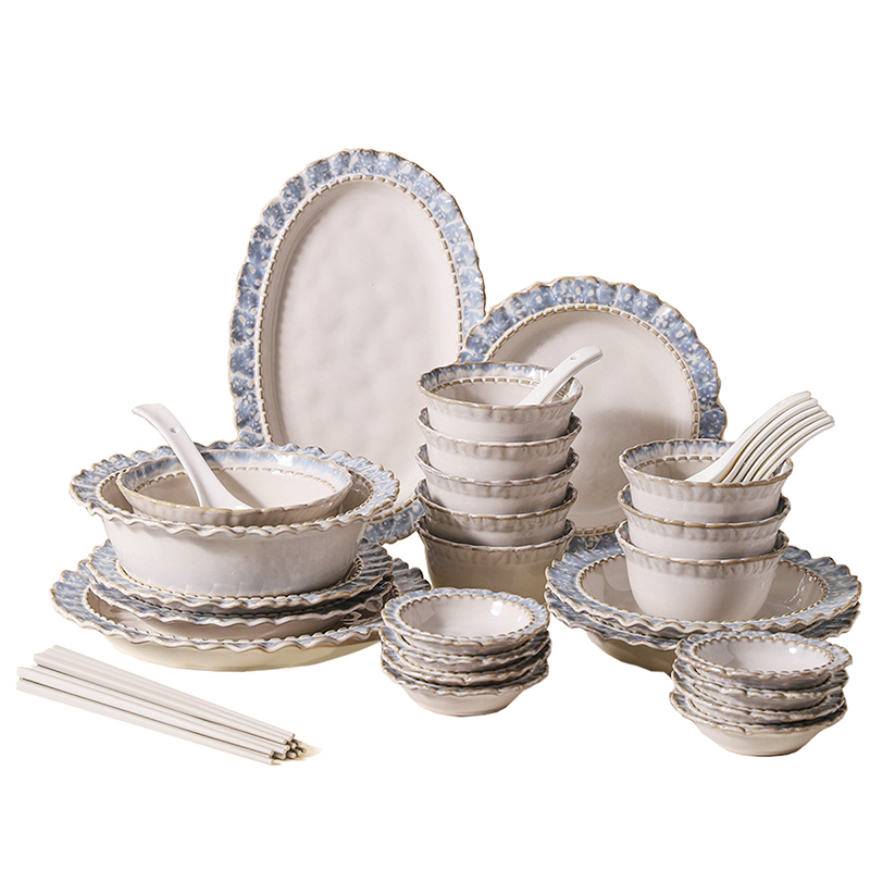 Набор: Набор французских столовых приборов дымчато-синего цвета. Характеристики: 【Практичный набор】Набор из 35 предметов на 8 персон с палочками для еды.