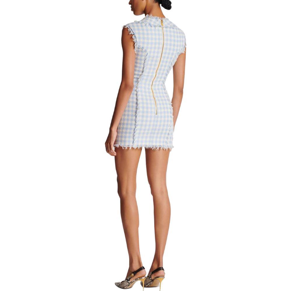Гингем твид мини-платье BALMAIN, синий 89 226₽