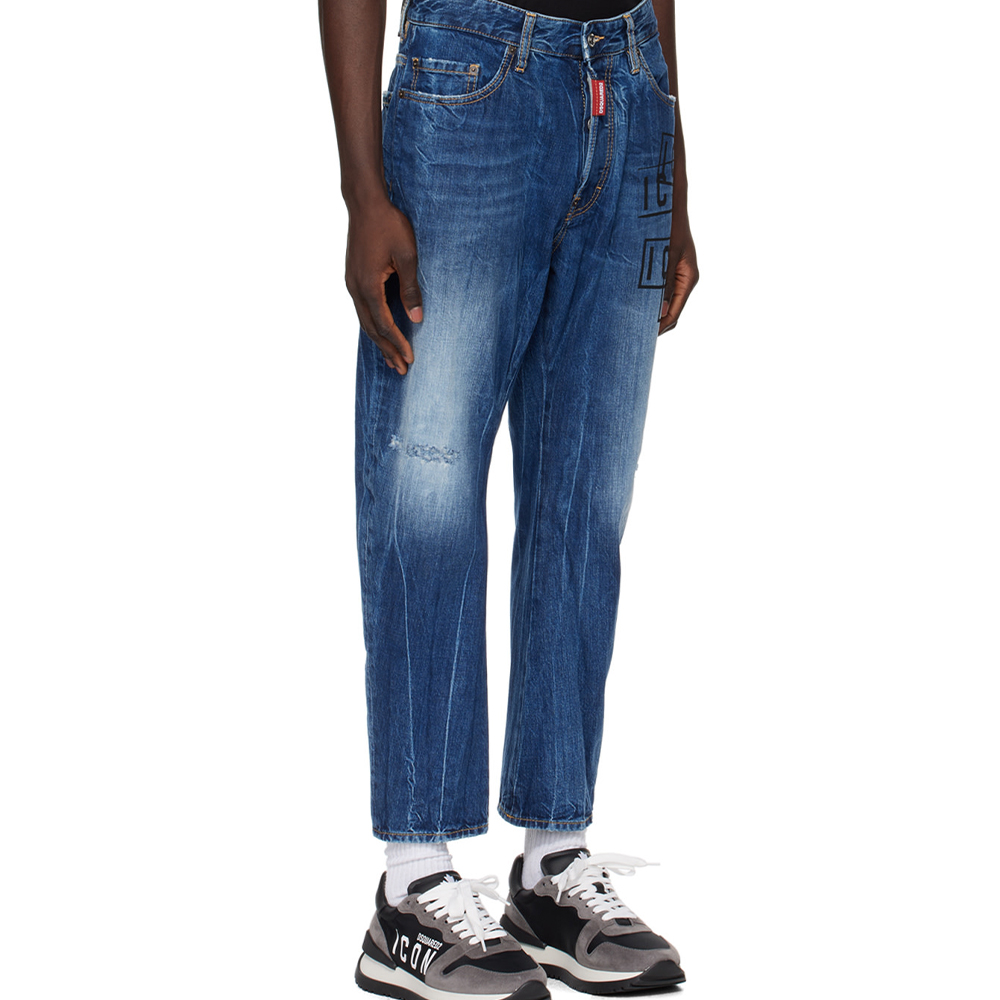 Dsquared2 Icon Printed Straight Leg Jeans DSQUARED 2, синий