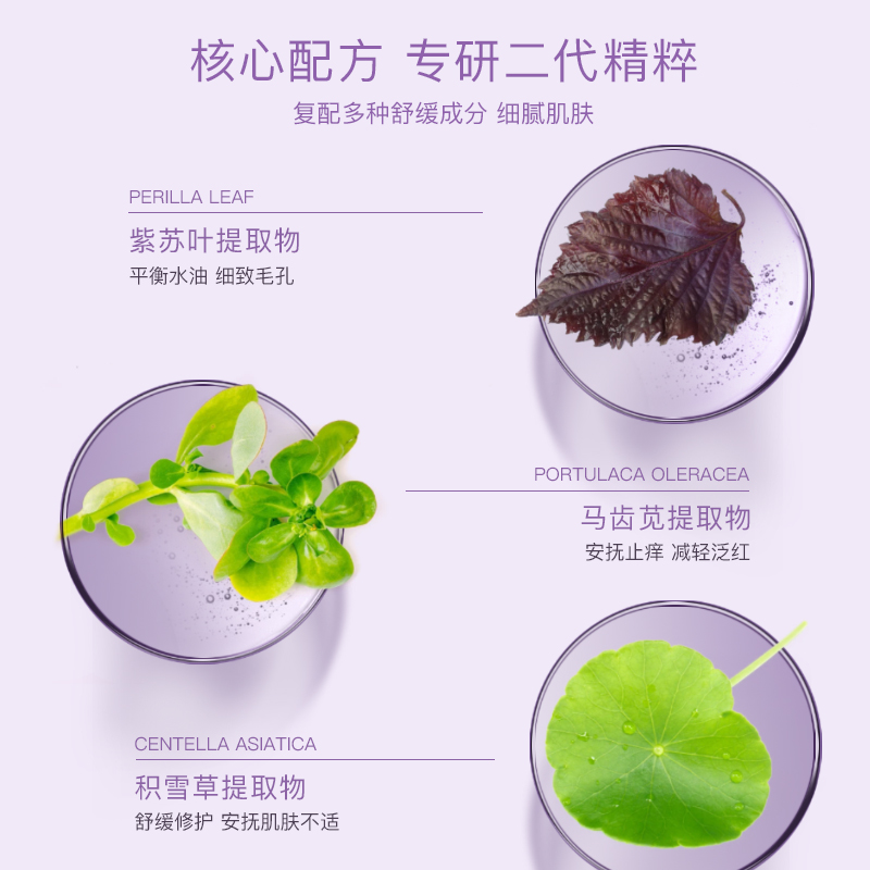 Обогащенный экстрактом листьев периллы, этот продукт восстанавливает и успокаивает кожу, делая ее гладкой и эластичной. В сочетании с запатентованным ингредиентом церамидом NP, гиалуронатом натрия, экстрактом портулака обыкновенного и экстрактом критмухи, он усиливает сияние кожи, улучшает цвет лица и делает ее увлажненной и сияющей.
