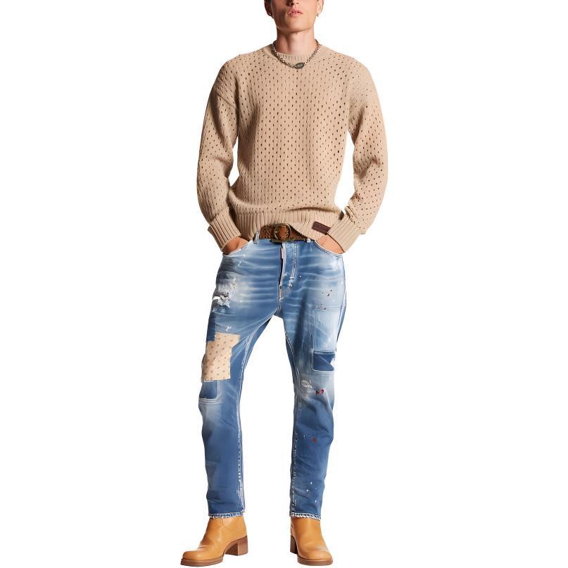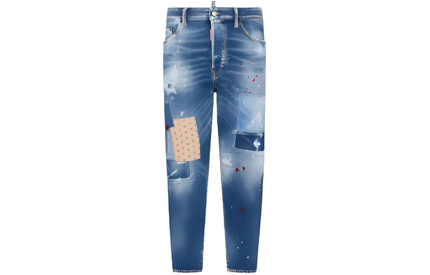 Джинсы с потертостями и элементами пэчворка DSQUARED 2, синий 46 687₽