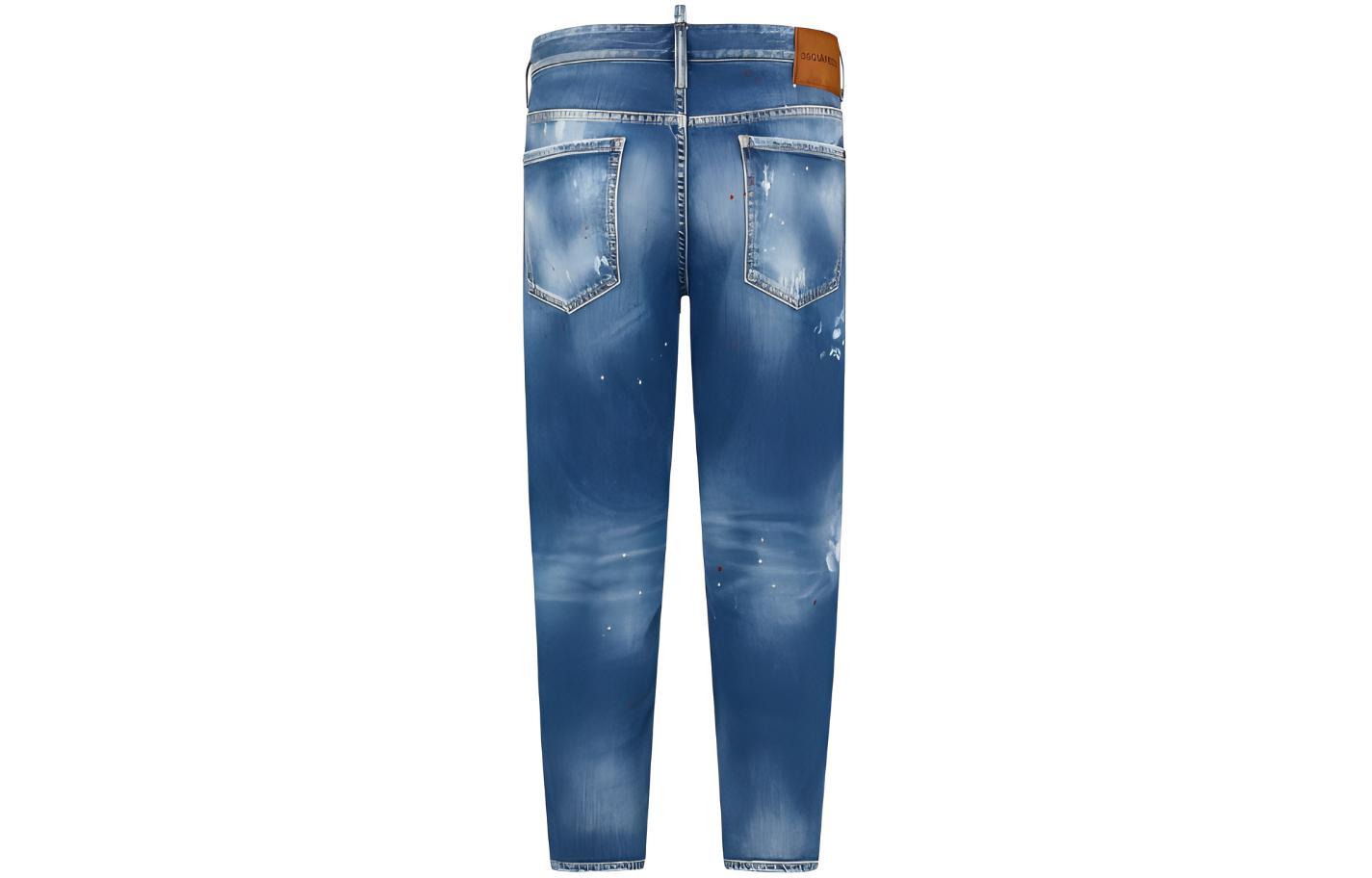 Джинсы с потертостями и элементами пэчворка DSQUARED 2, синий