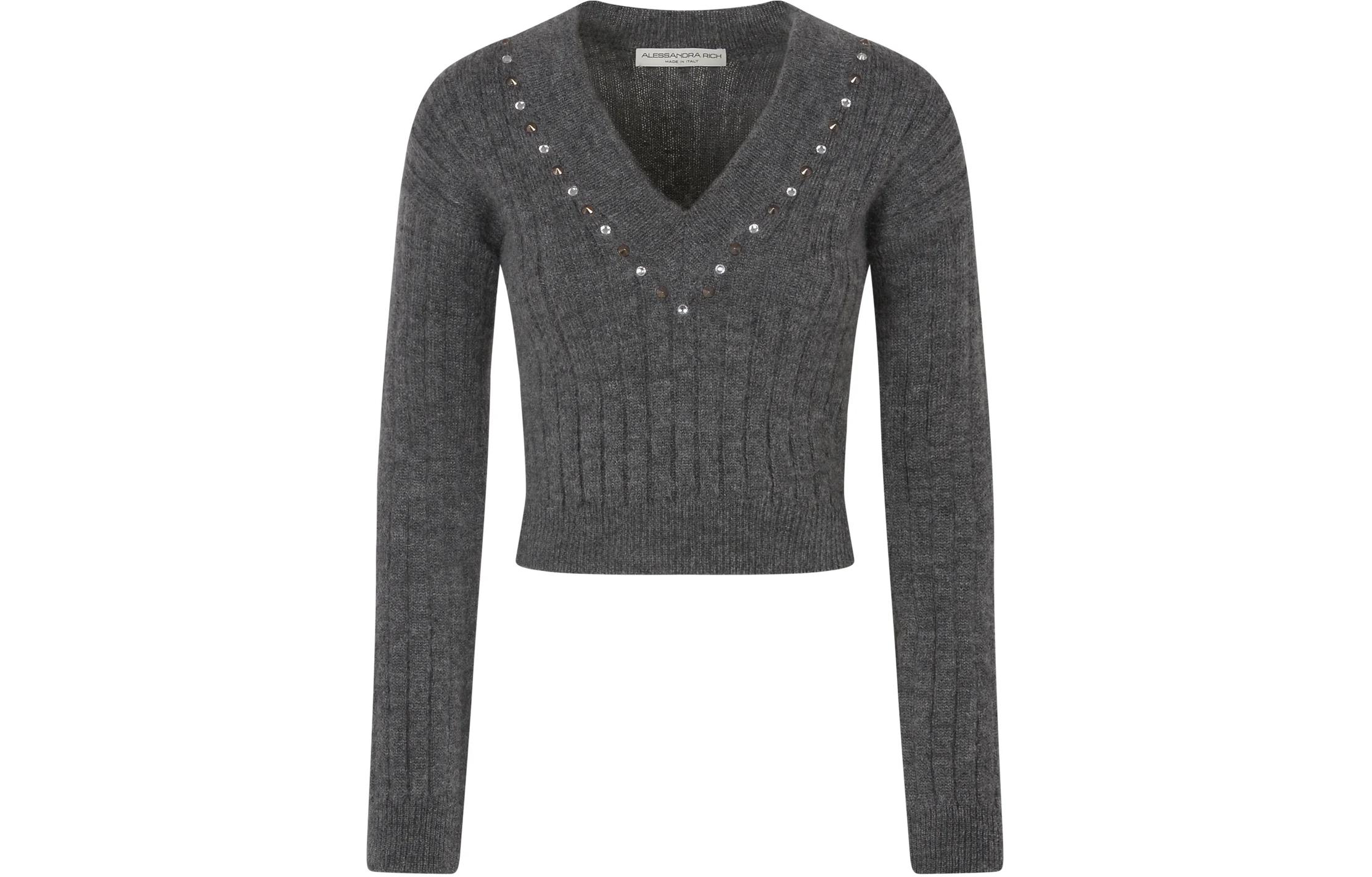 Шерстяной джемпер с кристаллами Alessandra Rich, серый 65 162₽