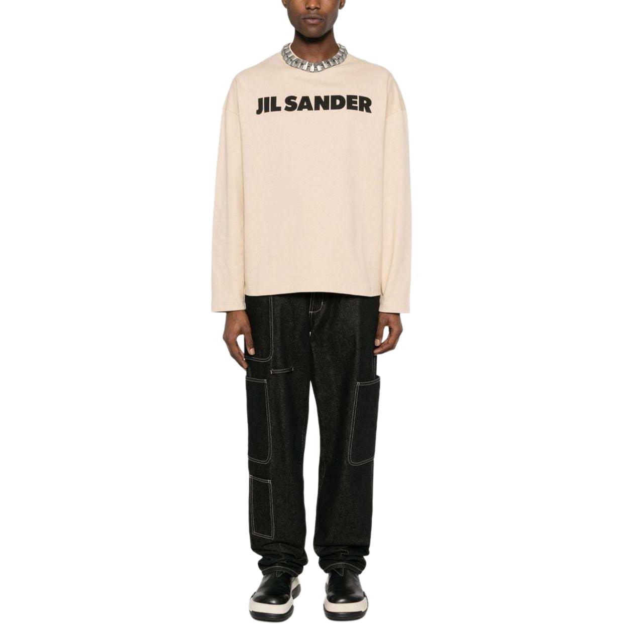 Футболка из хлопка с логотипом JIL SANDER, бежевый
