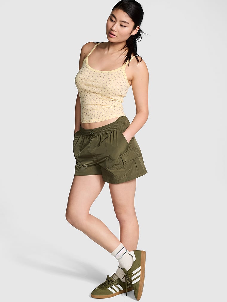 Расслабьтесь в этой мягкой хлопковой вещи с кружевной отделкой на горловине и бретельках.