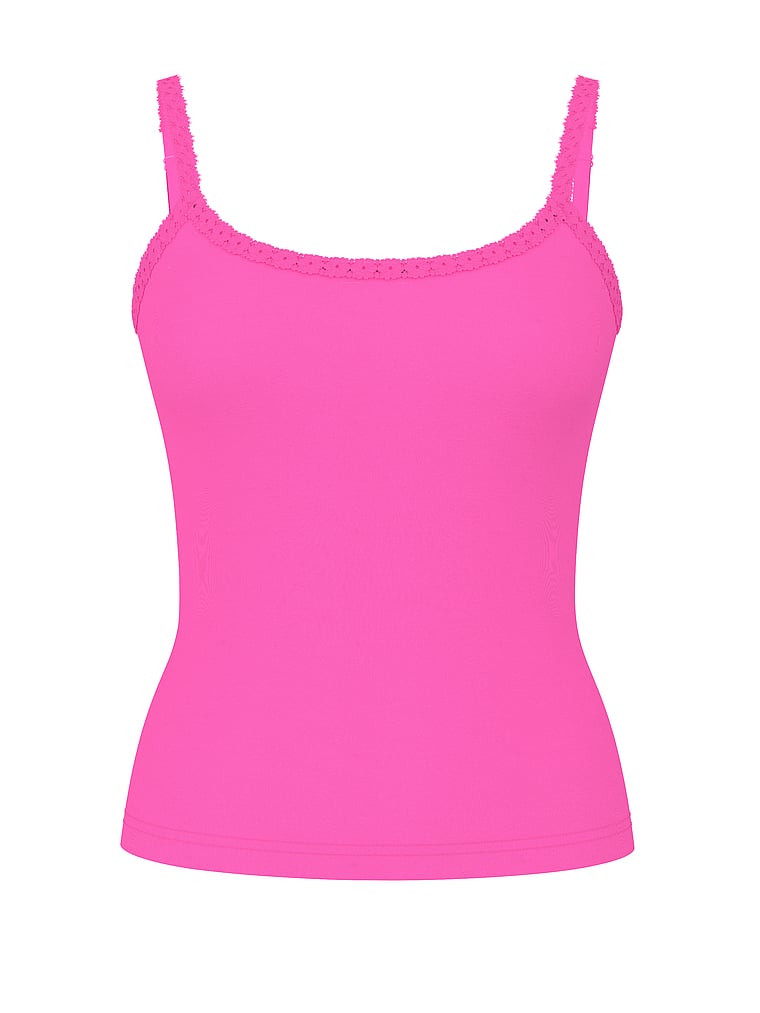 Расслабьтесь в этой мягкой хлопковой вещи с кружевной отделкой на горловине и бретельках.