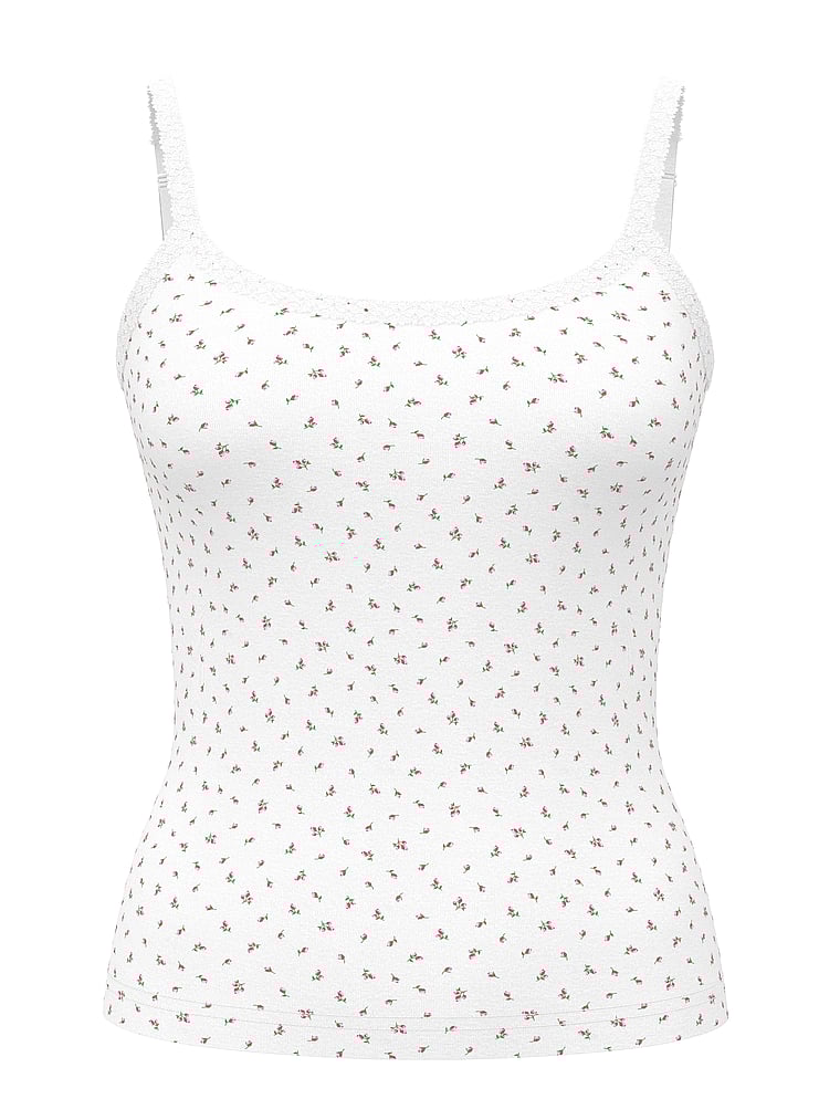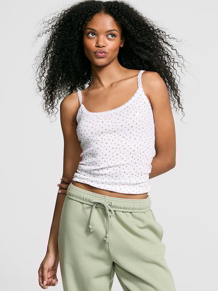 Расслабьтесь в этой мягкой хлопковой вещи с кружевной отделкой на горловине и бретельках.