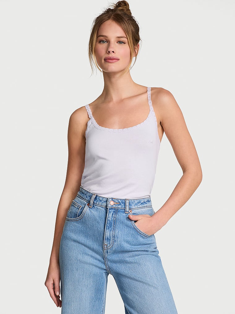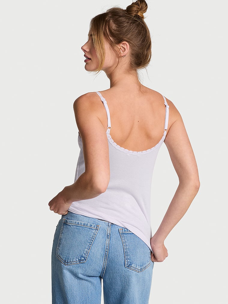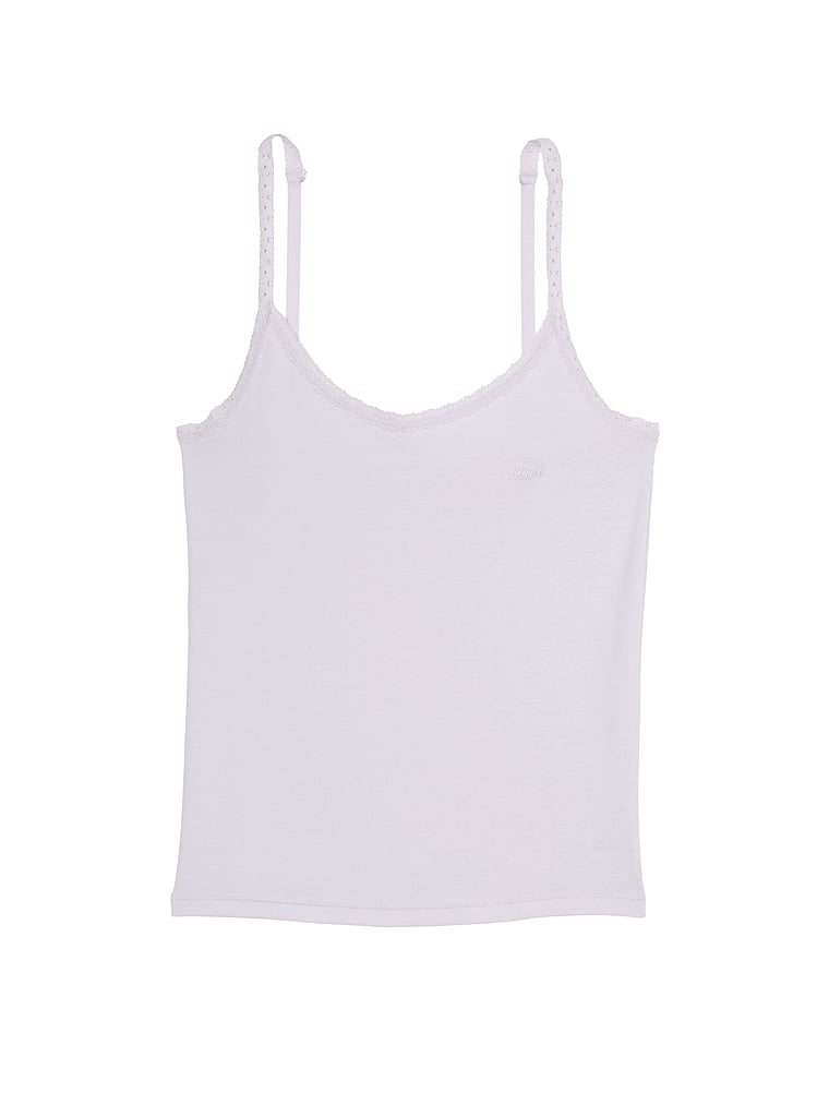Расслабьтесь в этой мягкой хлопковой вещи с кружевной отделкой на горловине и бретельках.