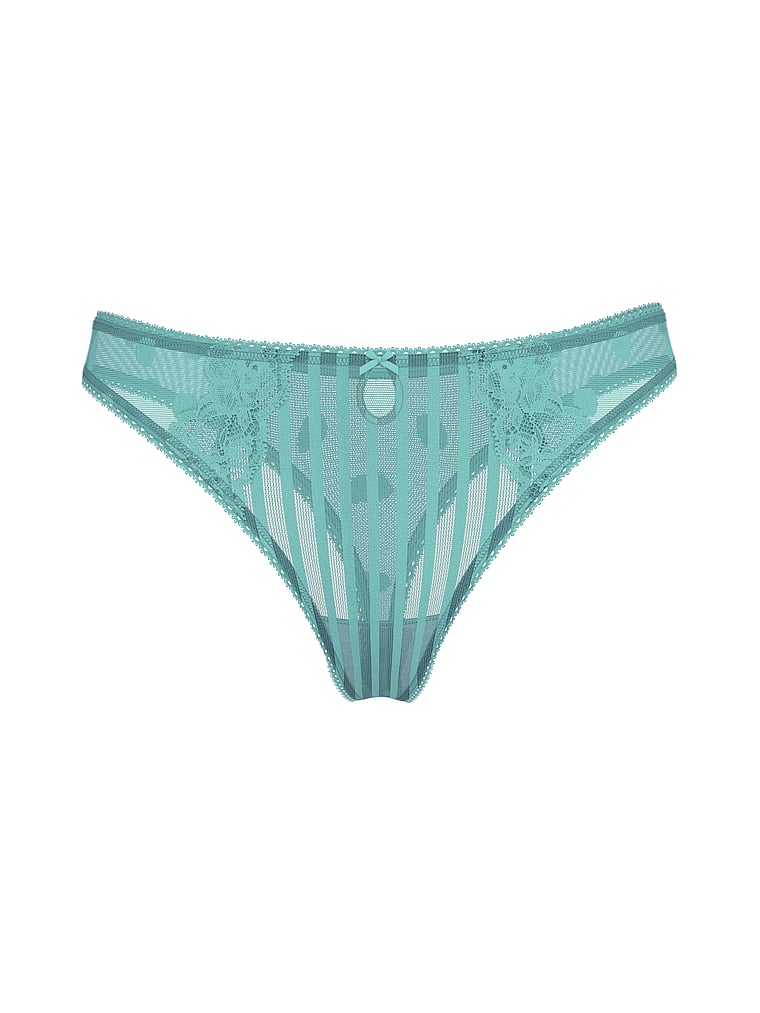 Сочетание полосок и точек придает этой прозрачной паре игривый вид. Дополнено нашим мягким кружевом и миниатюрным вырезом-замочной скважиной.