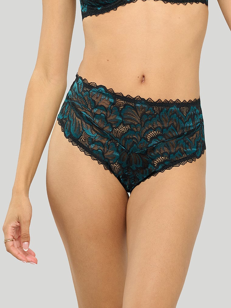 Эти трусики с высокой талией и высоким вырезом подчеркнут вашу естественную фигуру. Геометрическая кружевная отделка добавит кокетливости.