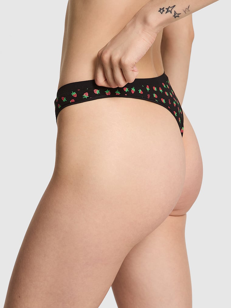 Бесшовные трусики-стринги с высоким вырезом Pink, smooth black strawberry print