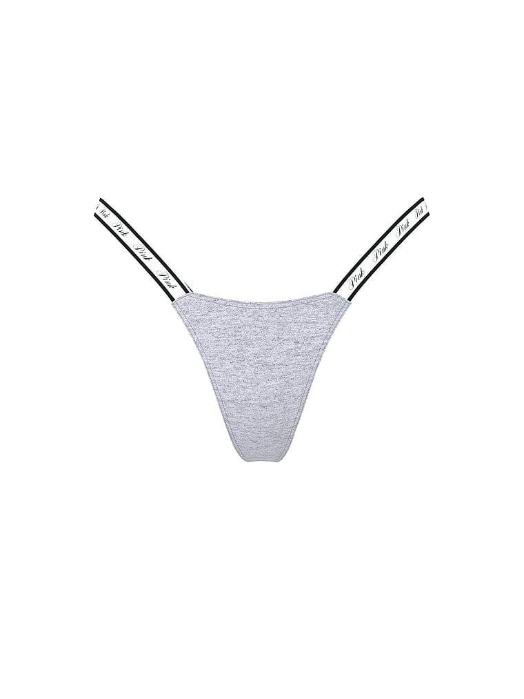 Трусики-Стринги из хлопка с высоким вырезом и логотипом Pink, smooth medium heather grey