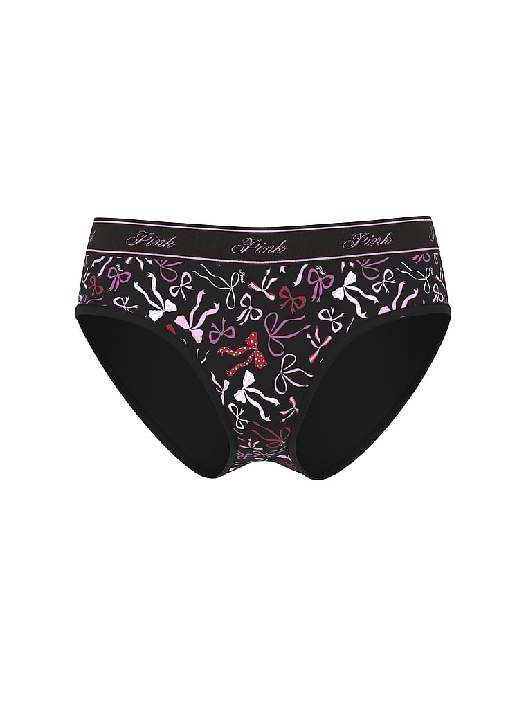 Хлопковые трусики-хипхаггеры с логотипом Pink, smooth black bow print