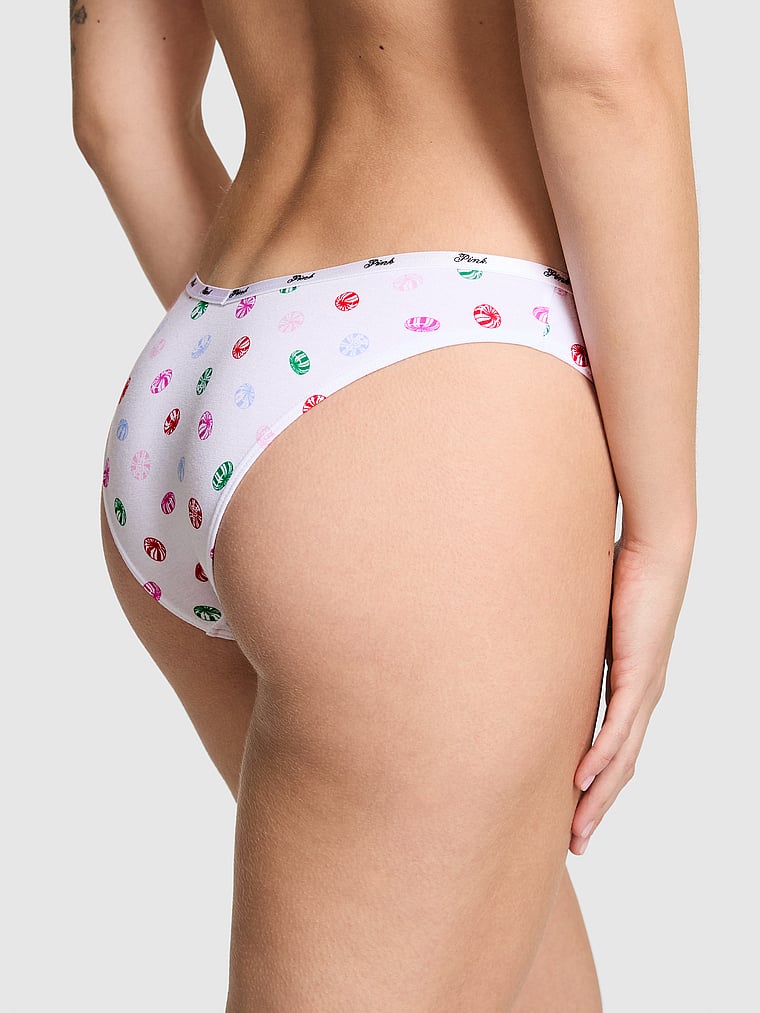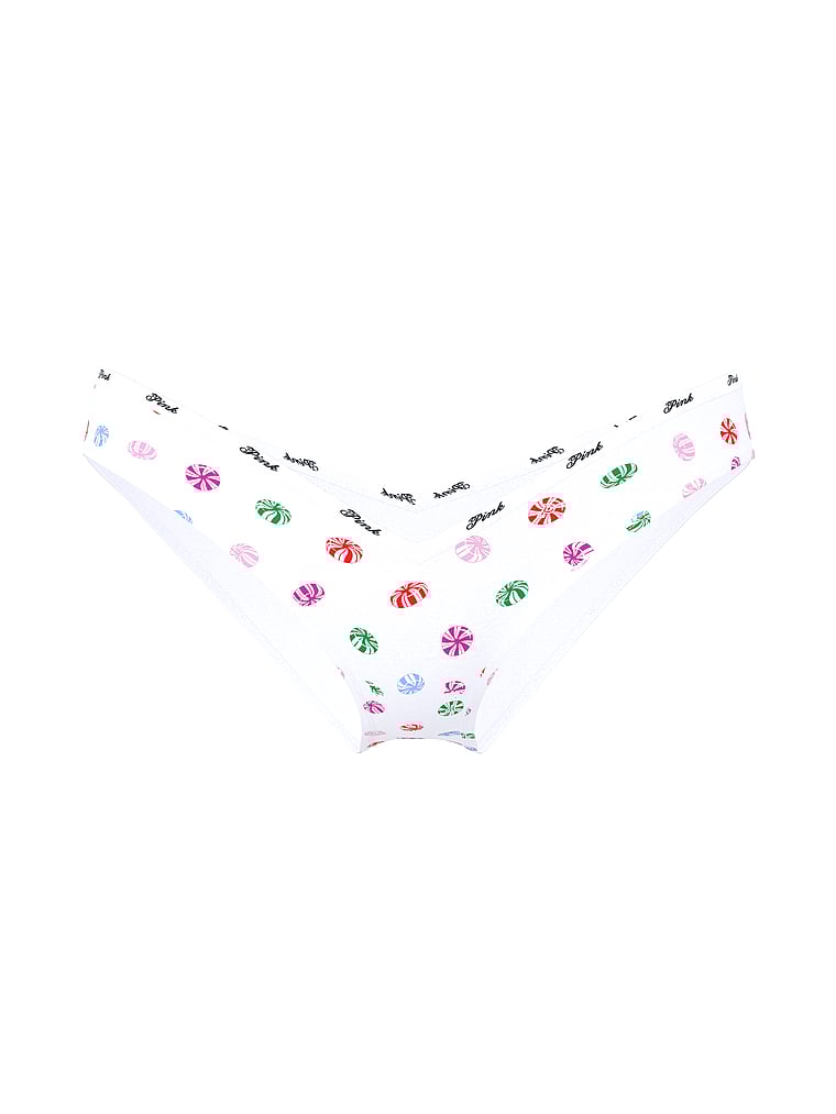 Трусики-Танга из хлопка с логотипом Pink, smooth white candy print