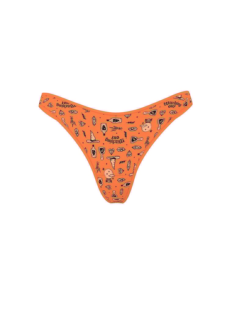 Хлопковые трусики-стринги с высоким вырезом Pink, smooth half baked witchy print 1 188₽