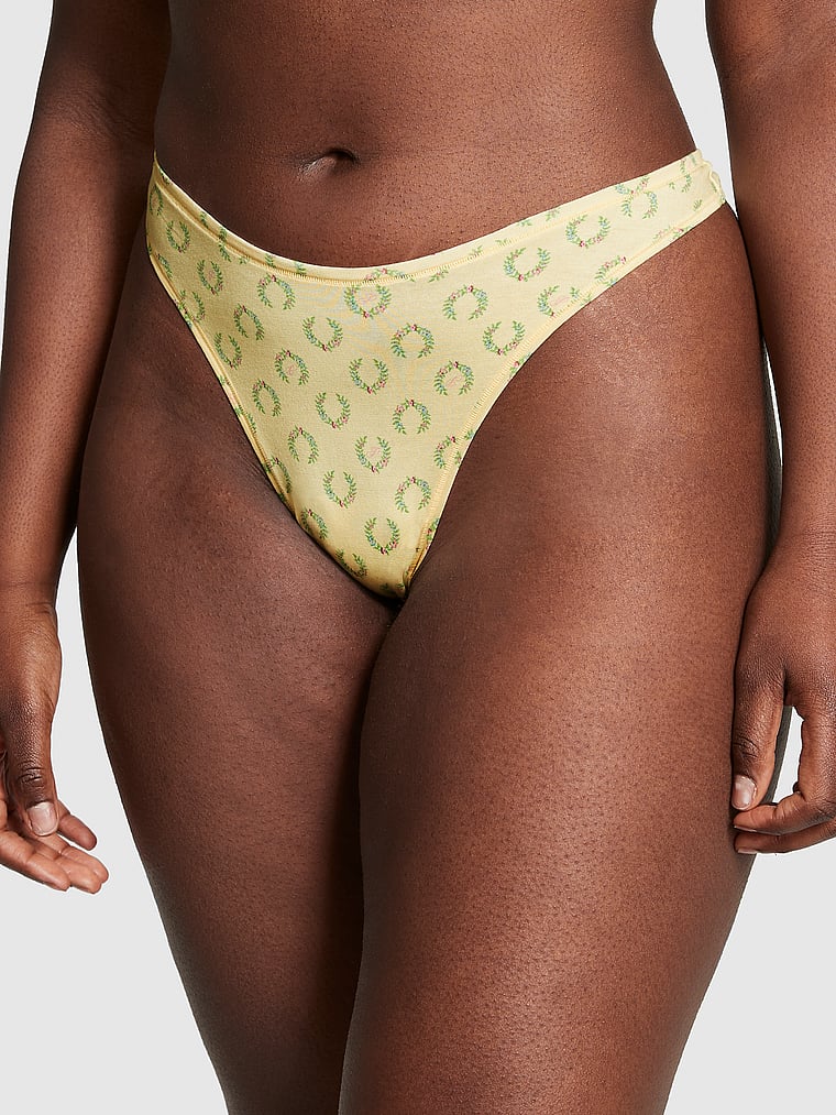 Хлопковые трусики-стринги с высоким вырезом Pink, smooth honeysuckle laurel print 974₽