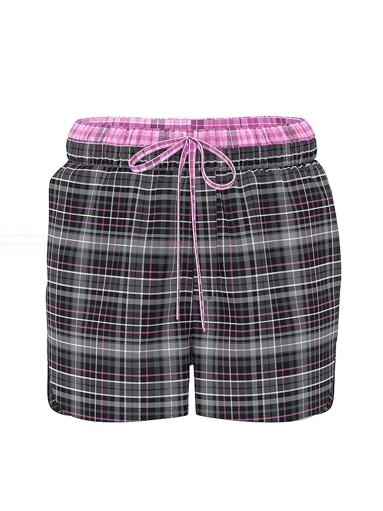 Пижамные шорты-боксеры бойфренда из фланели Pink, black plaid
