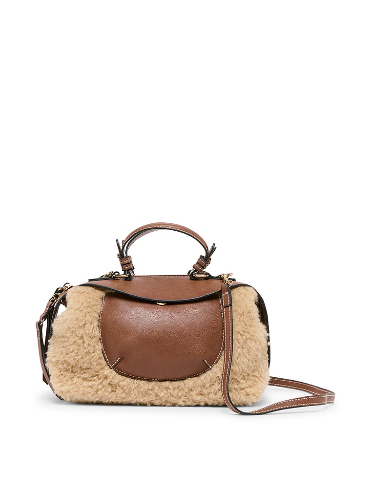 Привлекательный комбинированный внешний вид сумки LUNA сочетает в себе уютную овчину и кожаные детали. Нейтральная цветовая гамма и съемный ремешок через плечо делают эту модную сумку еще более универсальным дополнением к вашему гардеробу для холодной погоды.