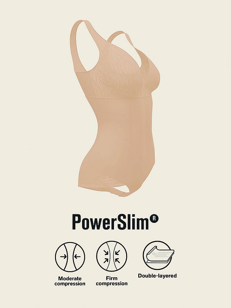 Это утягивающее боди с двухслойной структурой, выполненное из мягкой ткани и внутреннего слоя ткани PowerSlim, моделирует фигуру, создавая эффект песочных часов. Нижняя часть выполнена из ткани SmartLace, которая не сдавливает фигуру и не уплощает фигуру. Автор: Leonisa.