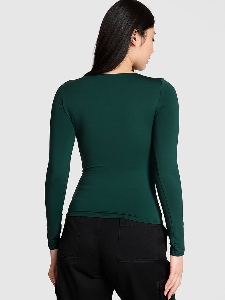 Футболка с длинными рукавами и сборками из эластичной ткани Pink, deep forest