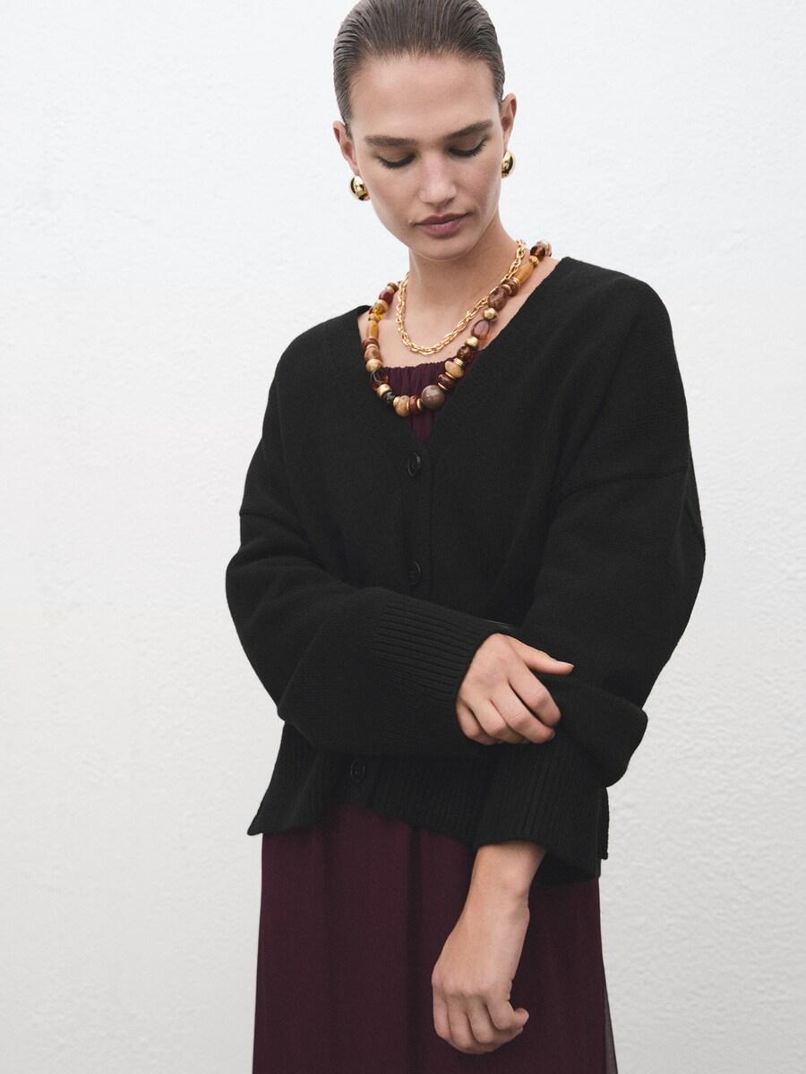 Вязаный кардиган MANGO Roger, черный 7 082₽