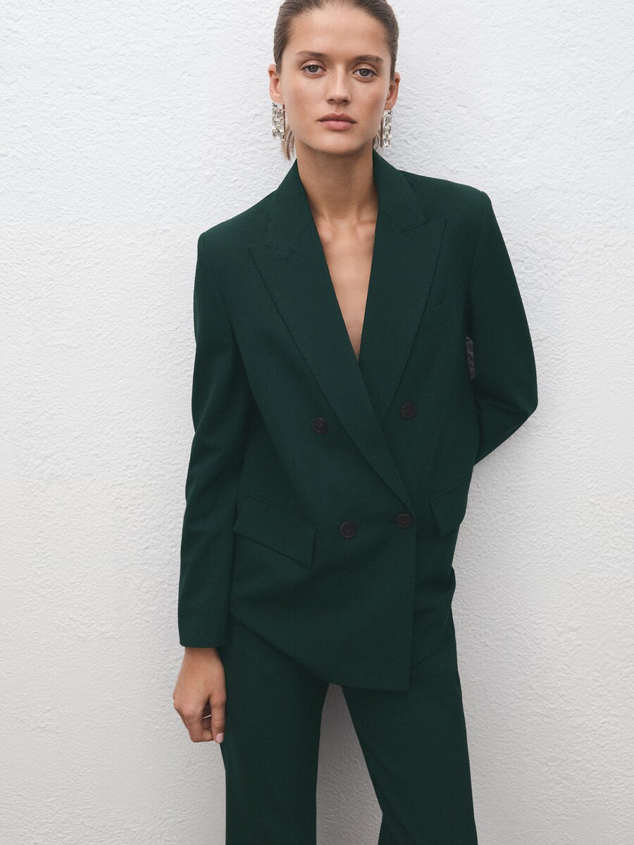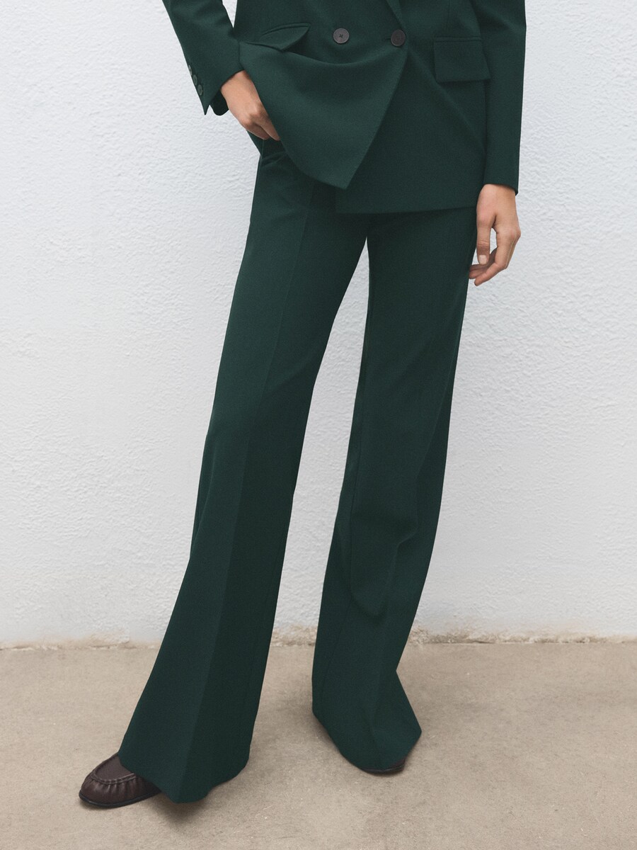 Расклешенные плиссированные брюки MANGO IRESE, темно-зеленый
