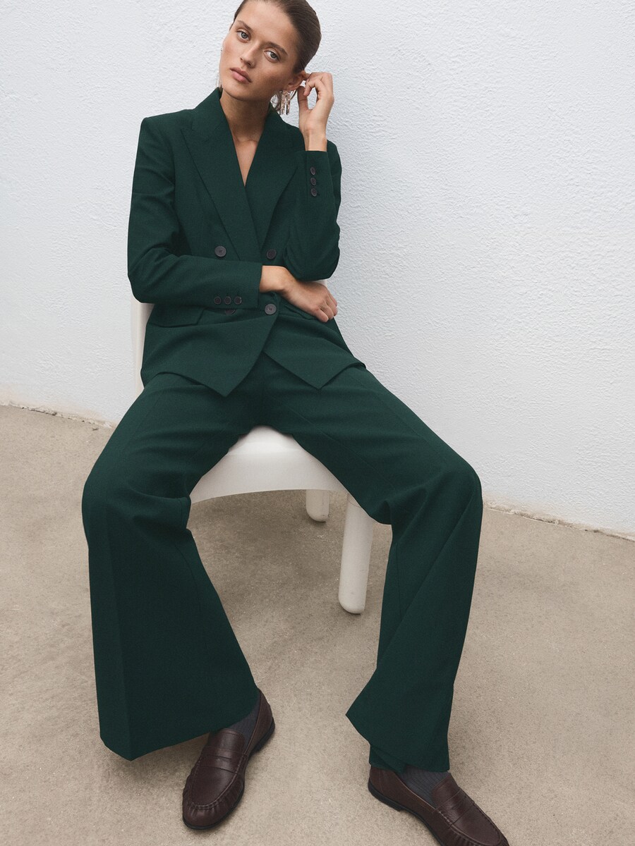 Расклешенные плиссированные брюки MANGO IRESE, темно-зеленый 7 854₽
