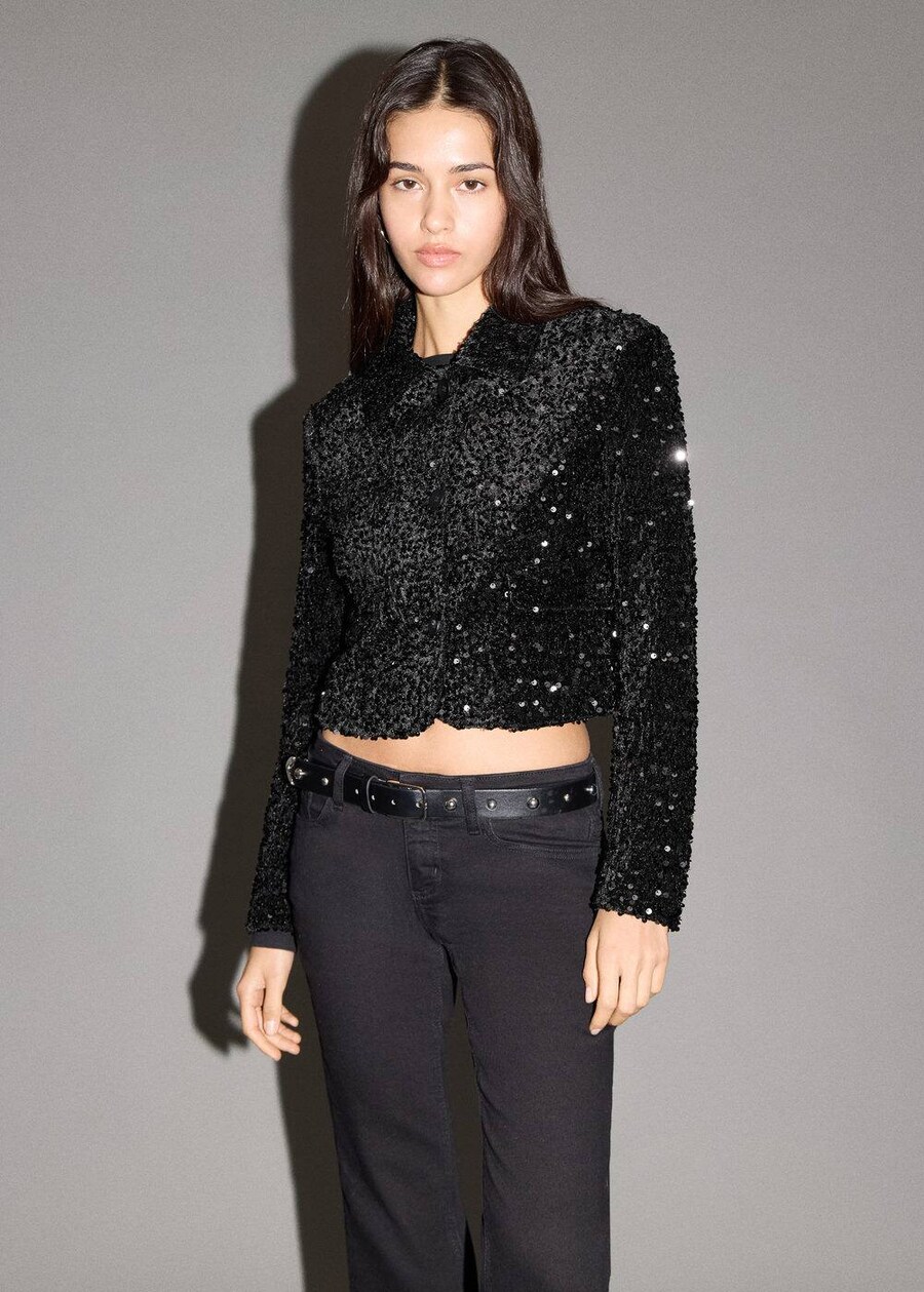 Куртка межсезонная MANGO TEEN Sequinsb, черный