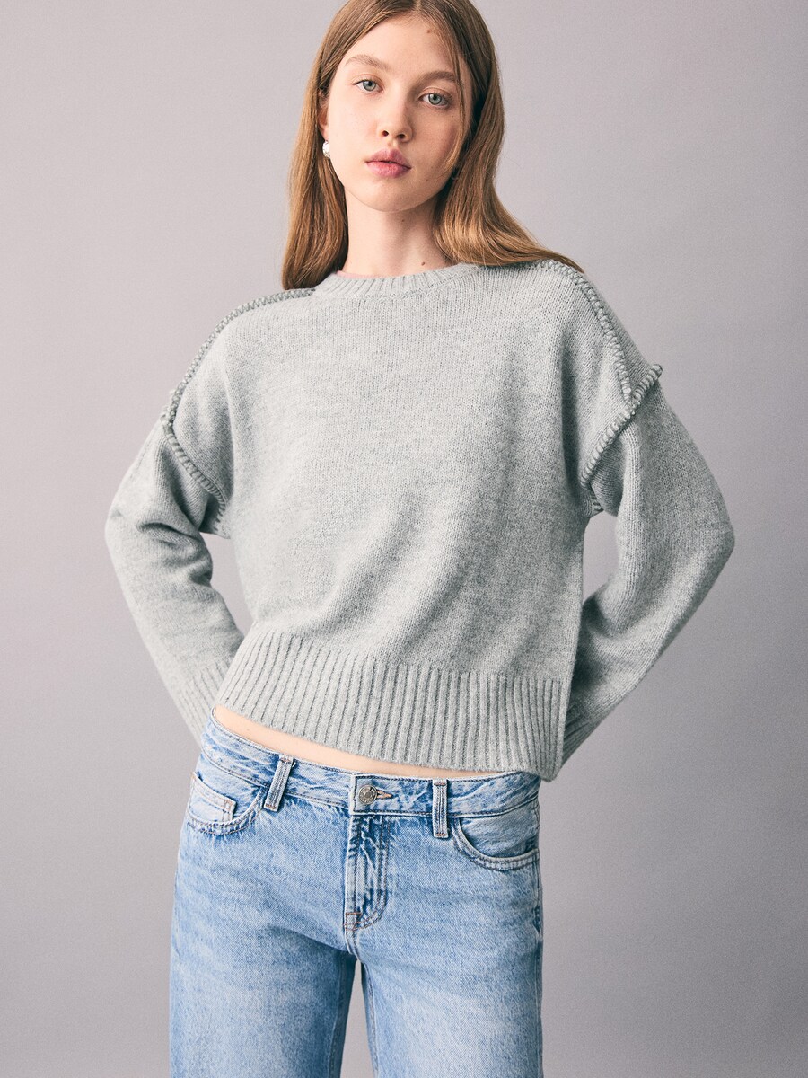 Свитер MANGO TEEN Stitch2, светло-серый