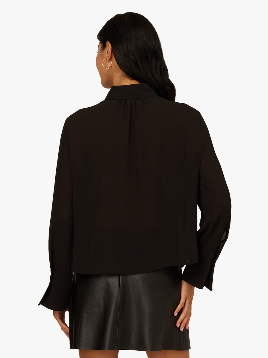 Блуза Adrianna Papell Long Sleeve Sheer Ruffle Front, черный