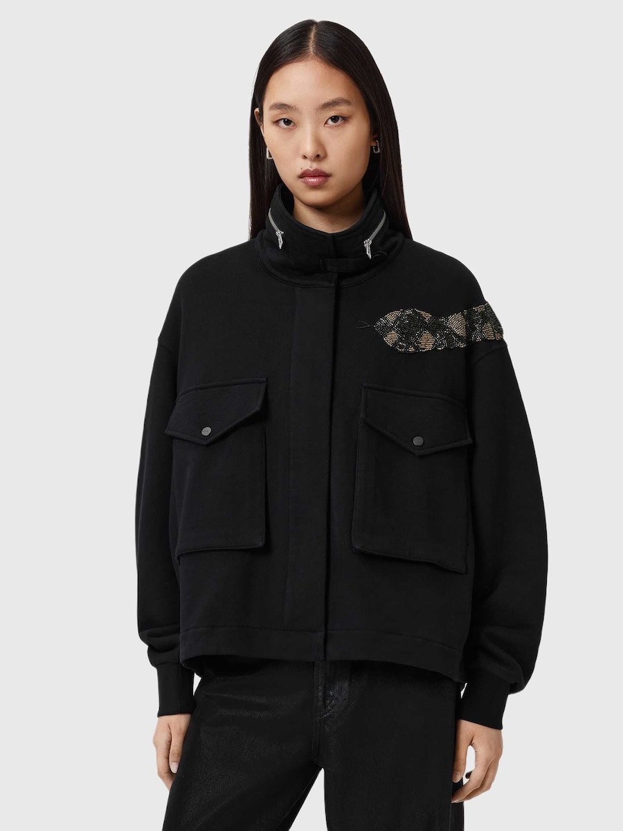 Толстовка с капюшоном на молнии AllSaints OUROS CLARIE, черный